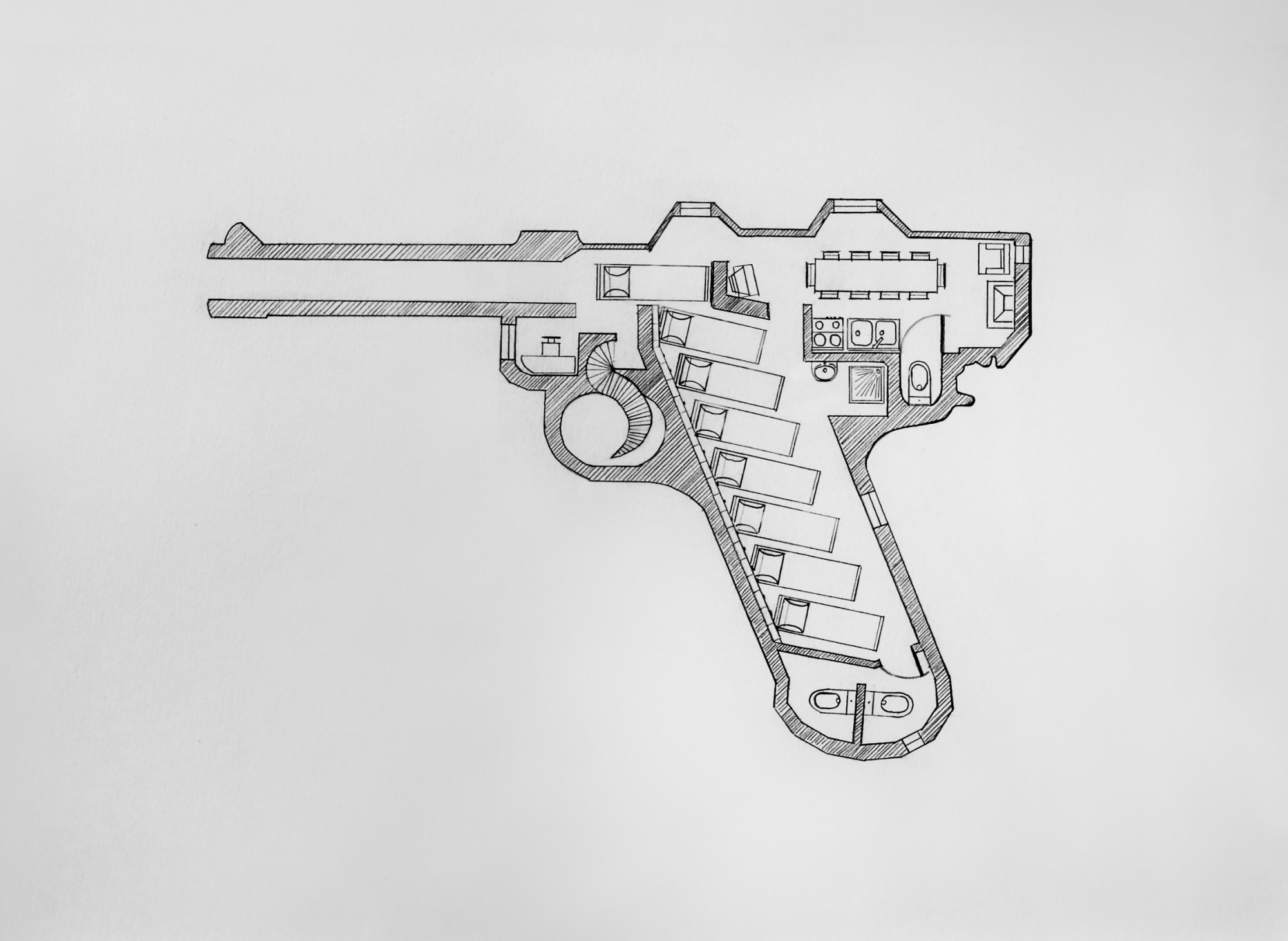 XIII - M134D Minigun -: 74x180cm (in collaboration with Nina Jelec, architect based in Sarajevo)